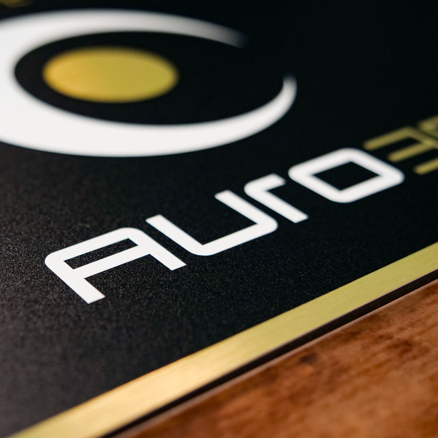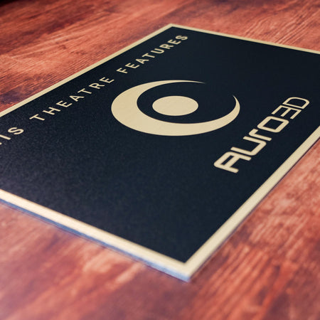 Wenn Auro-3D dein bevorzugtes Tonformat ist, brauchst du dieses Schild. In klassischem Gold-Schwarz, passend zu unseren anderen Schildern – oder wahlweise mit zusätzlichem Weiß-Lack für das neue Auro-Logo – sticht es aus der Menge heraus.