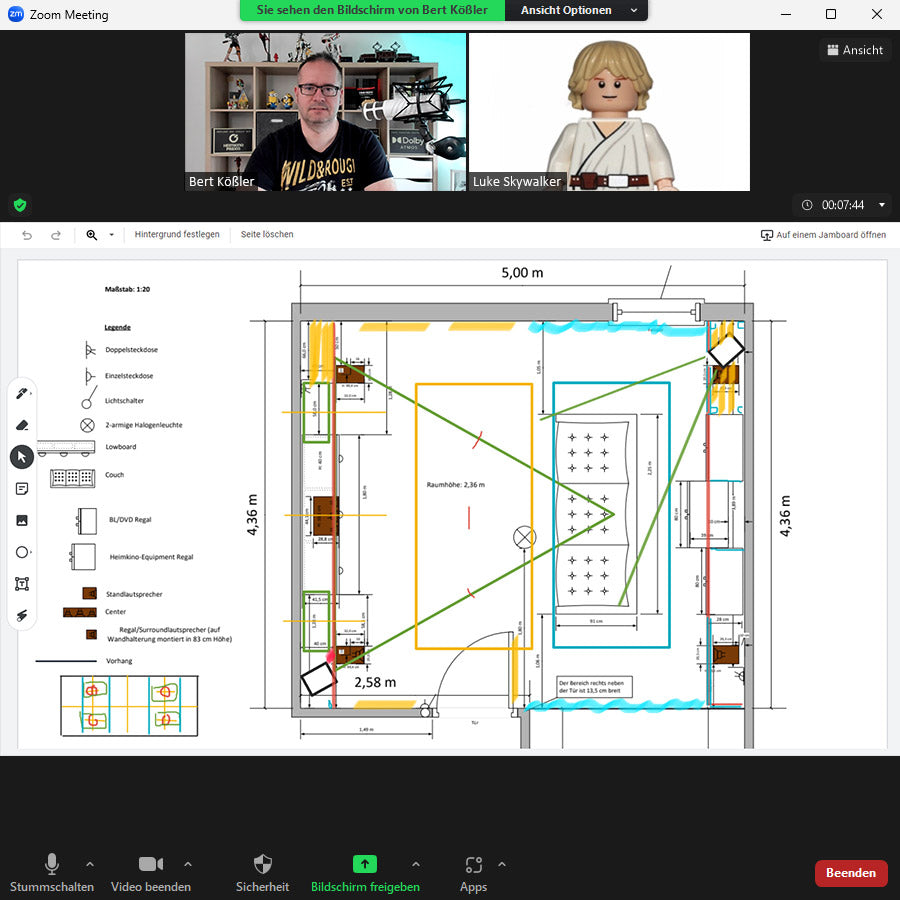Ich habe Berts Beratung wahrgenommen, da bei mir der dritte Umzug mit meinem Wohnzimmerkino anstand und ich diesmal die akustischen Maßnahmen ausreizen möchte. Ich habe mir bei der Buchung vor allem Kritik an meiner bestehenden Planung sowie Hilfe bei offenen Fragen erhofft.